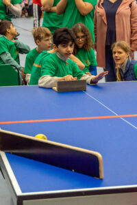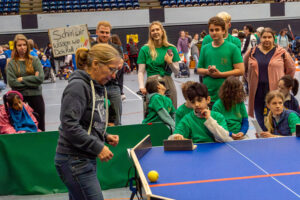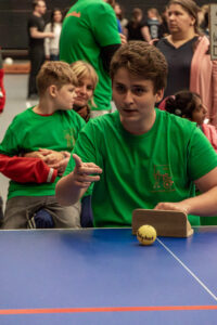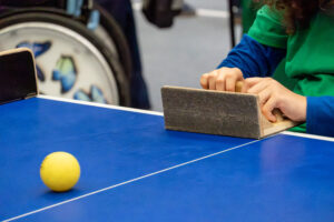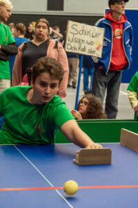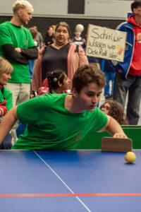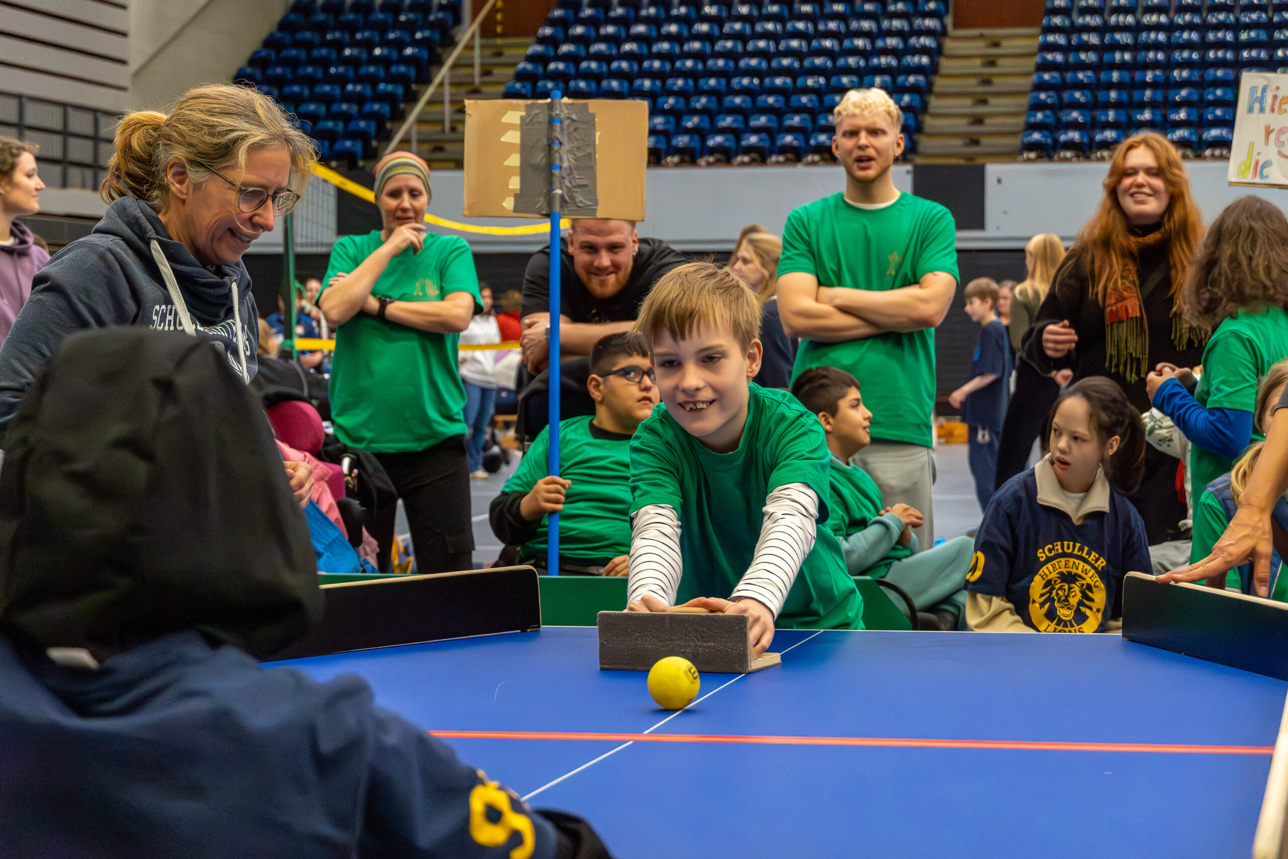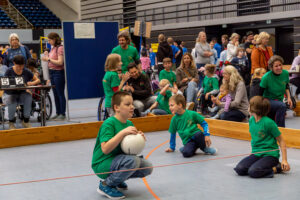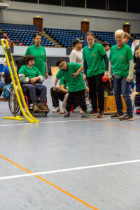 Beim Boccia, einer paralympischen Sportart, wurde mit viel Geschick und Konzentration gespielt. Ziel des Spiels war es, die eigenen Kugeln möglichst nahe an eine Zielkugel zu werfen oder sie mithilfe einer Rampe zu rollen. Es war beeindruckend zu sehen, wie präzise, konzentriert und mit wie viel Freude unsere Spieler:innen der drei Teams dieses Turnier bestritten.