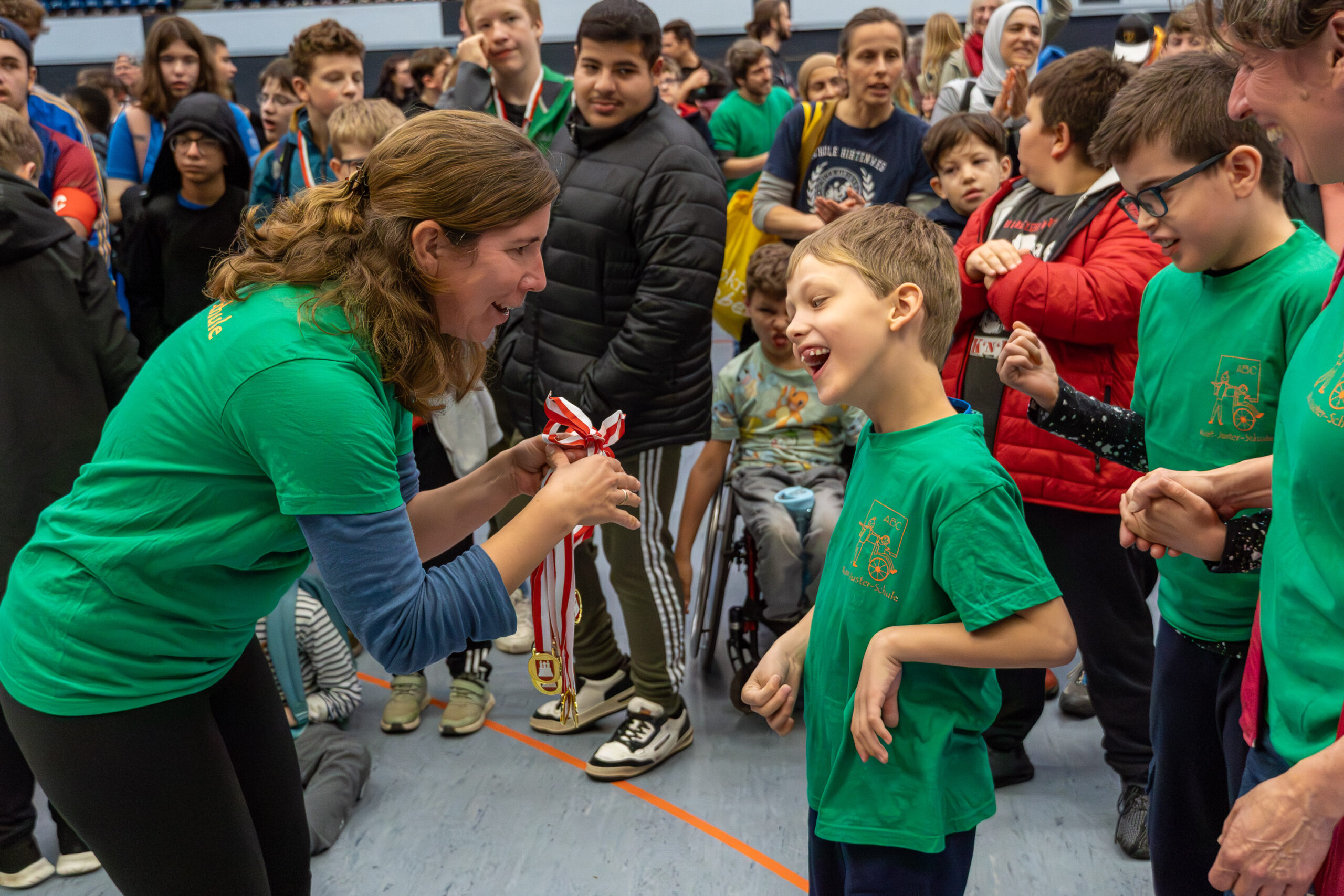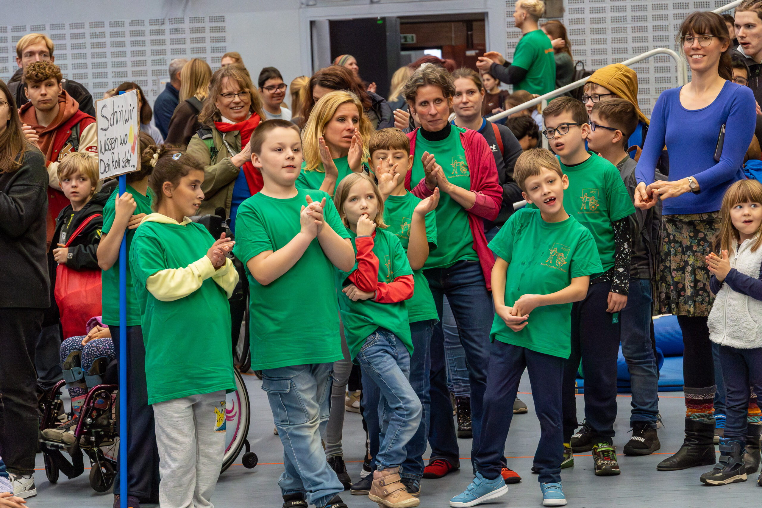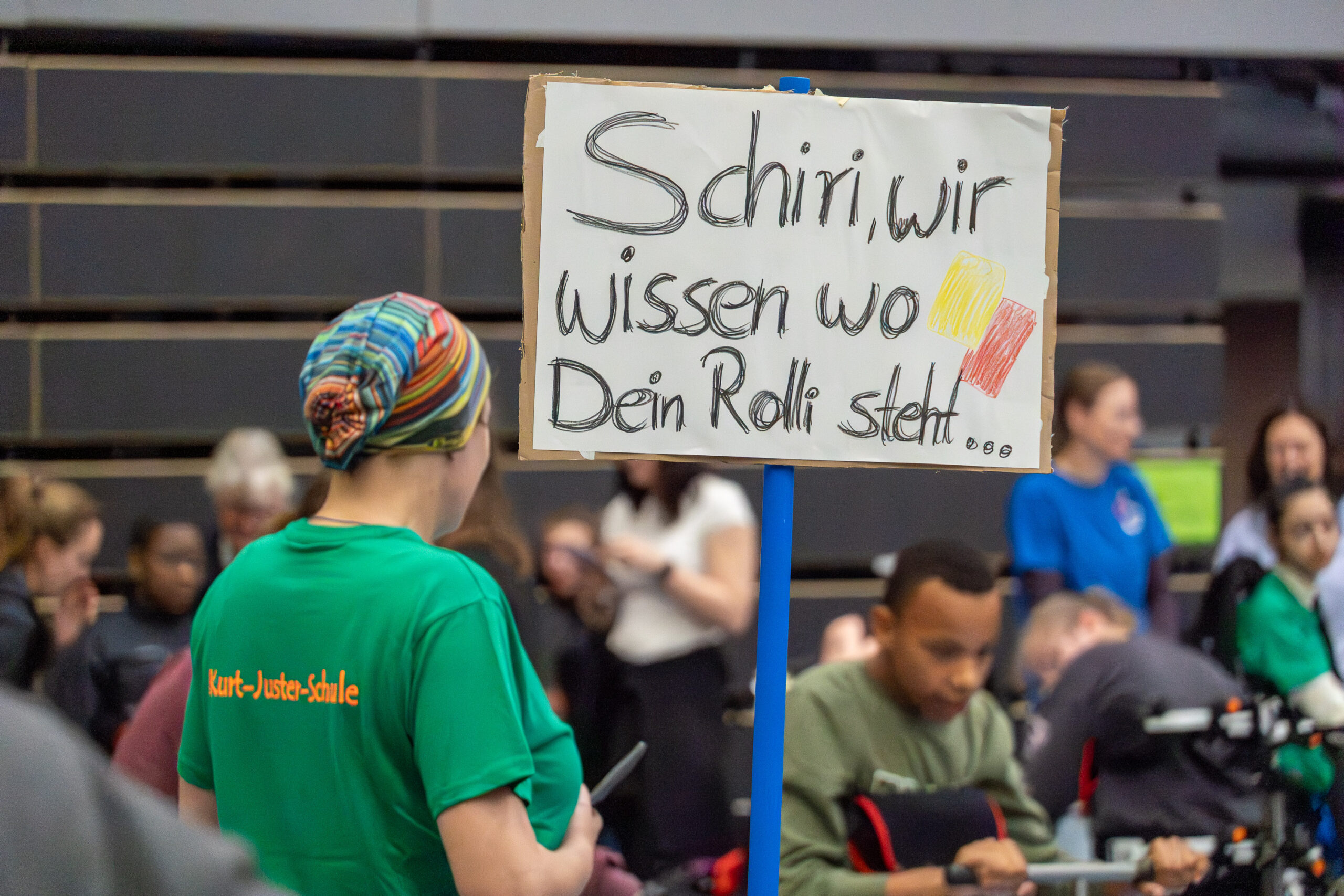 Auch unsere Schüler:innen der Kurt-Juster-Schule waren in den verschiedenen Wettbewerben am Start und wurden von zahlreichen Fans und Zuschauer:innen mit tollen Plakaten und lautstarker Unterstützung begeistert bejubelt.