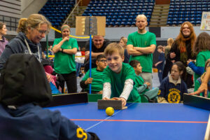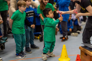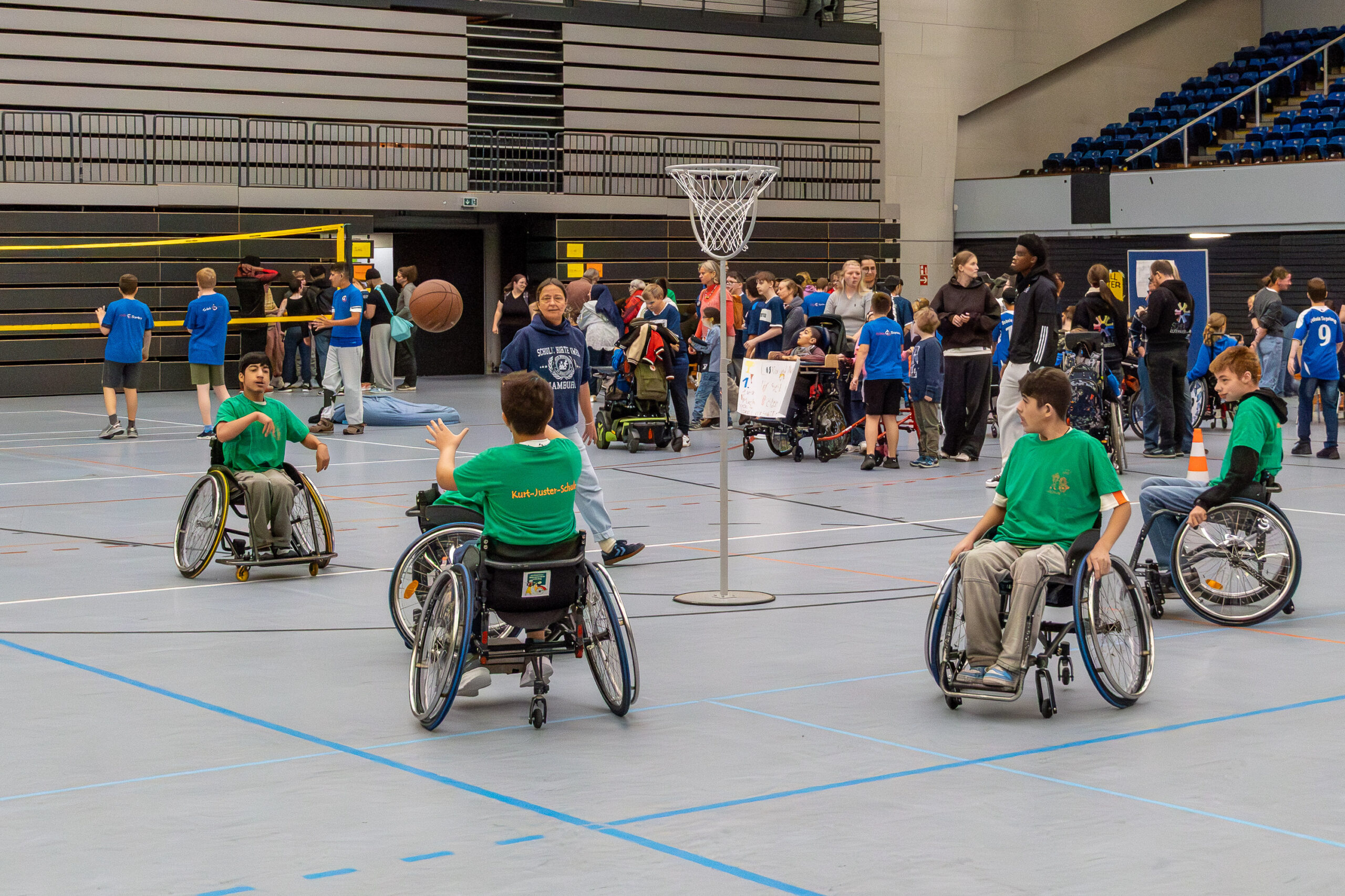 Am 07.10.2025 war es wieder soweit: Rund 350 Schüler:innen aller vier Hamburger Schulen mit dem Förderschwerpunkt körperlich-motorische Entwicklung trafen sich für einen Vormittag in der großen Sporthalle Hamburg, um gemeinsam Sport zu treiben, Spaß zu haben und sich in unterschiedlichsten Disziplinen zu messen.